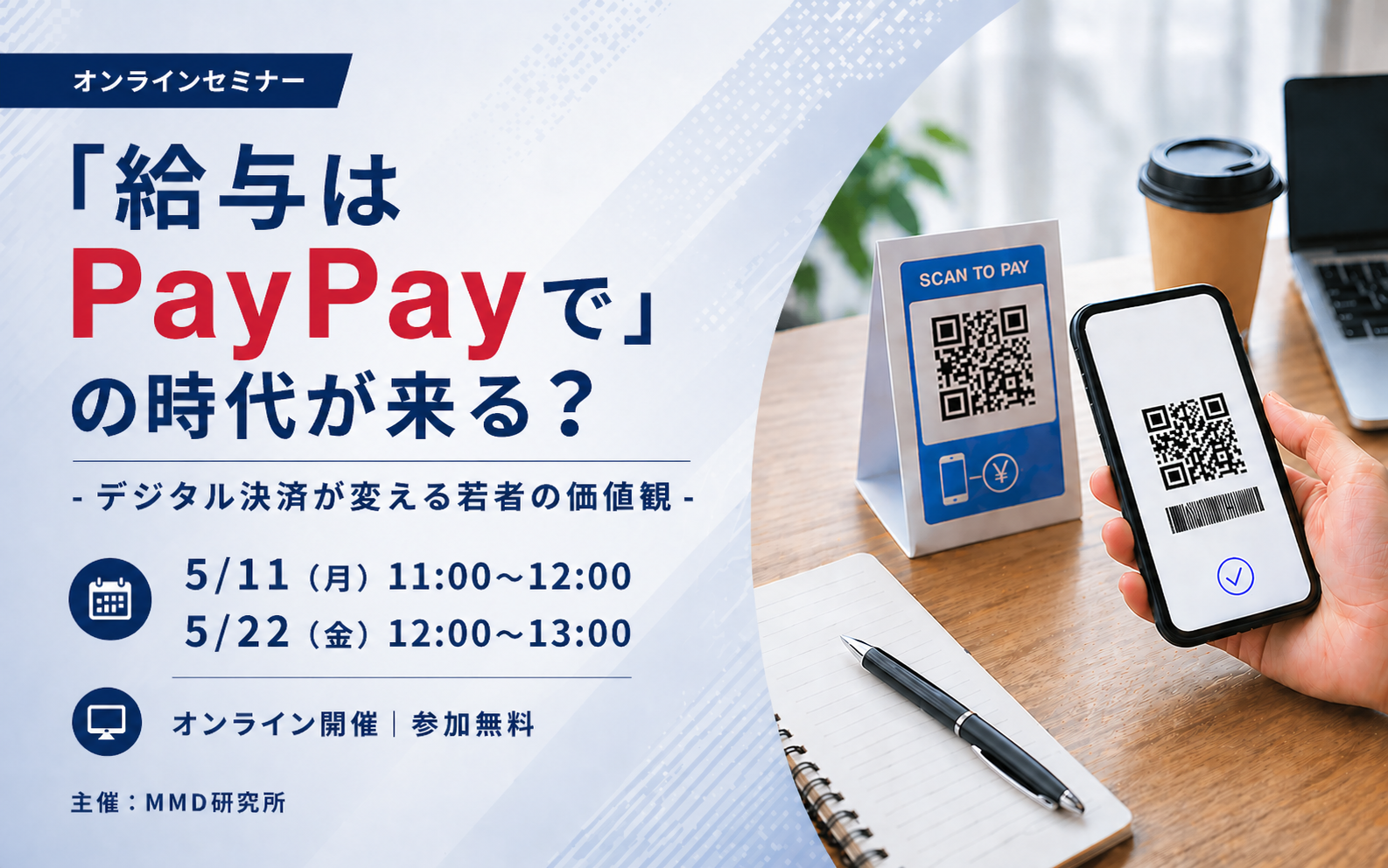 5/11(月)・5/22(金)MMDオンラインセミナー「『給与はPayPayで』の時代が来る?-デジタル決済が変える若者の価値観-」